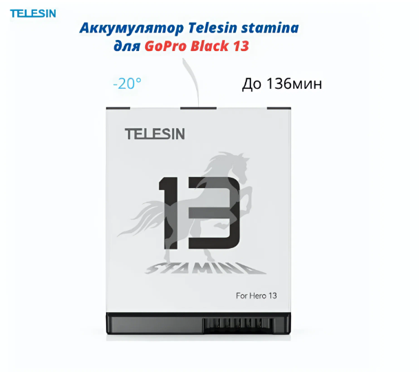 Усиленный Аккумулятор для GoPro Hero 13 Telesin